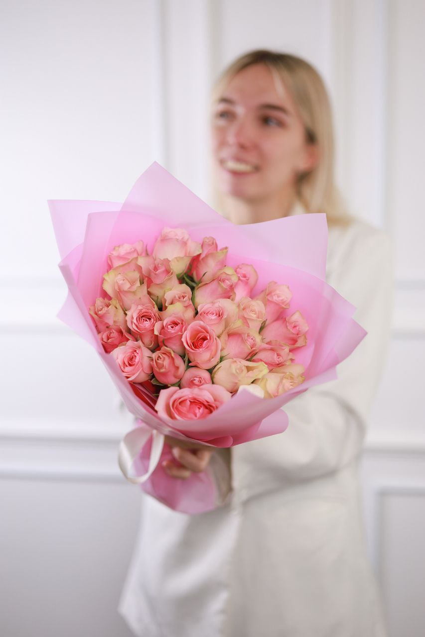 Букет из 25-ти роз в оформлении.