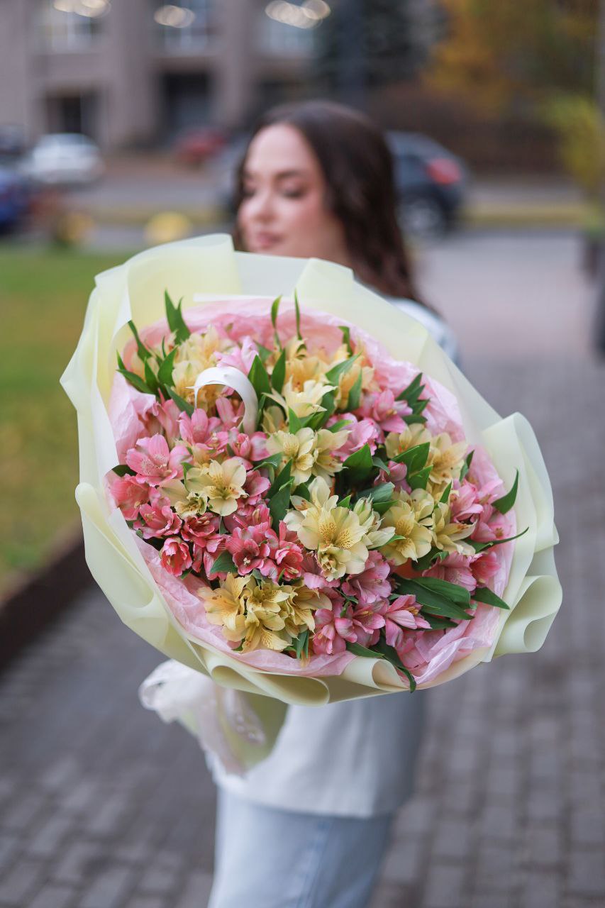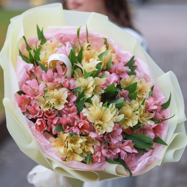 Букет альстромерии микс в оформлении.