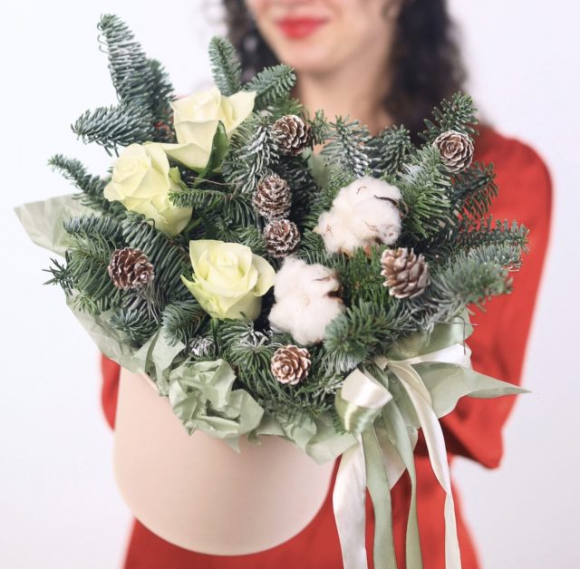 Состав: натуральный нобилис, одноголовые розы, хлопок, шишки.