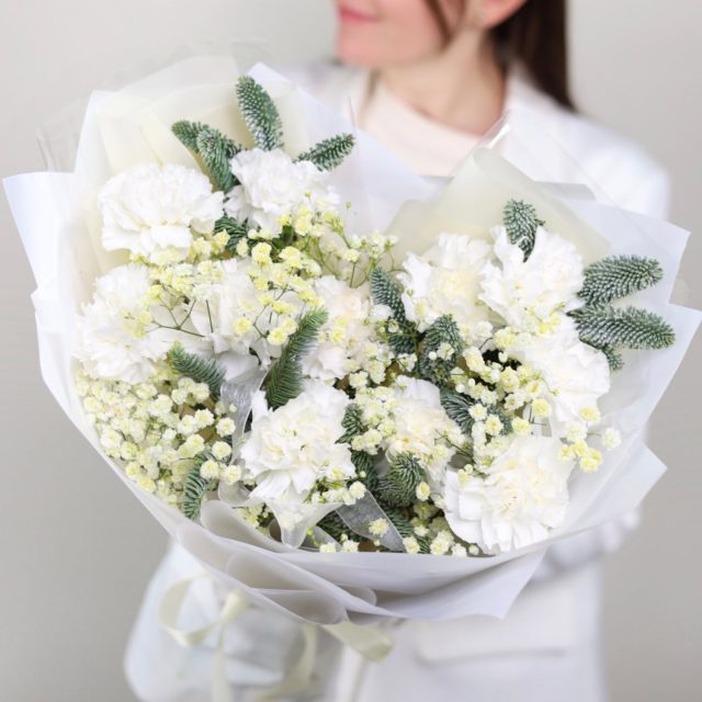 Прекрасный зимний букет в белой гамме в оформлении.