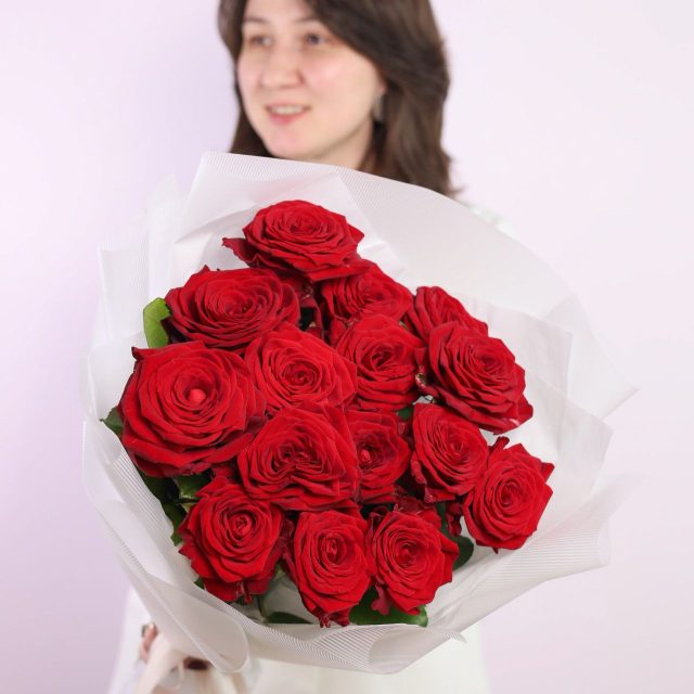 Букет из 15 роз в оформлении.