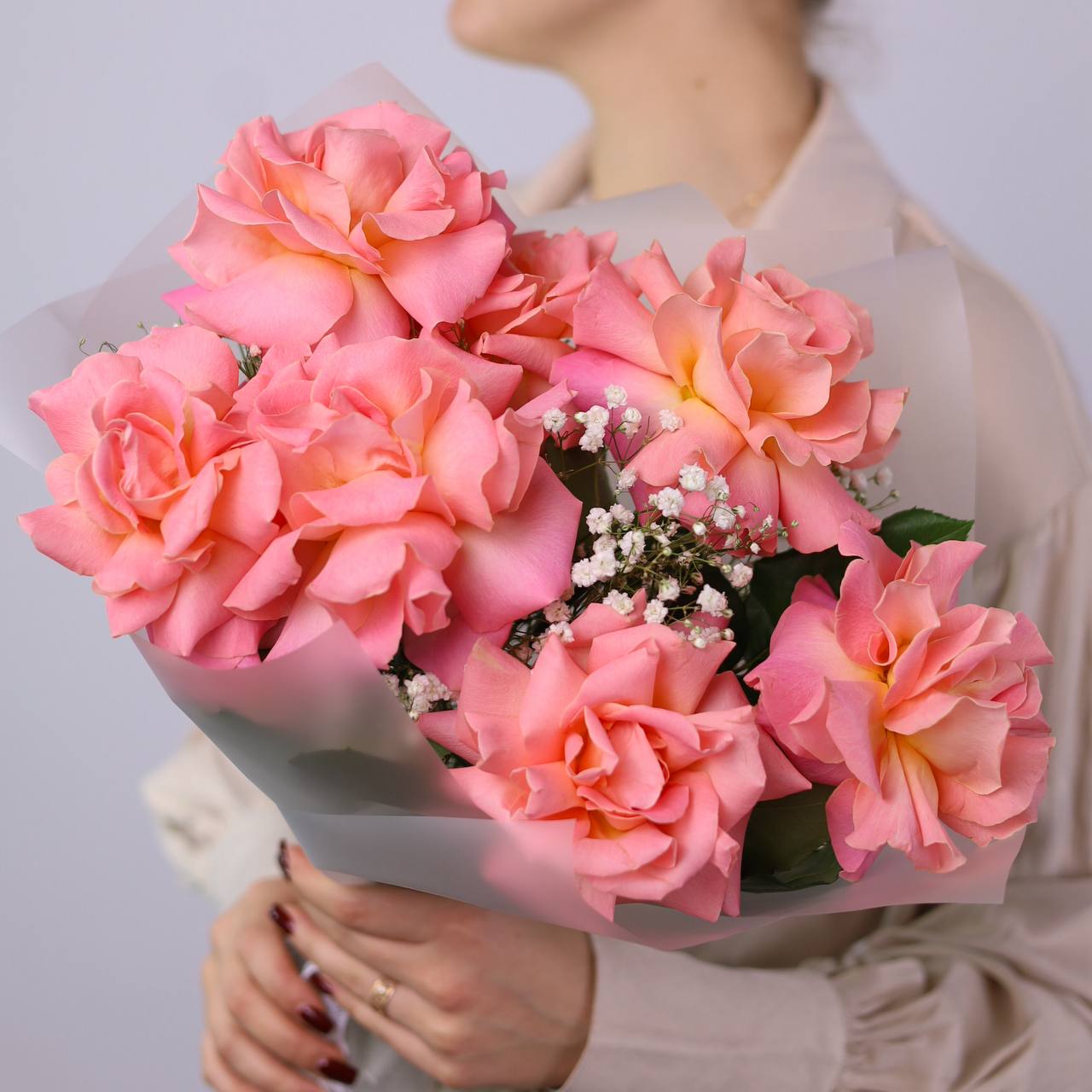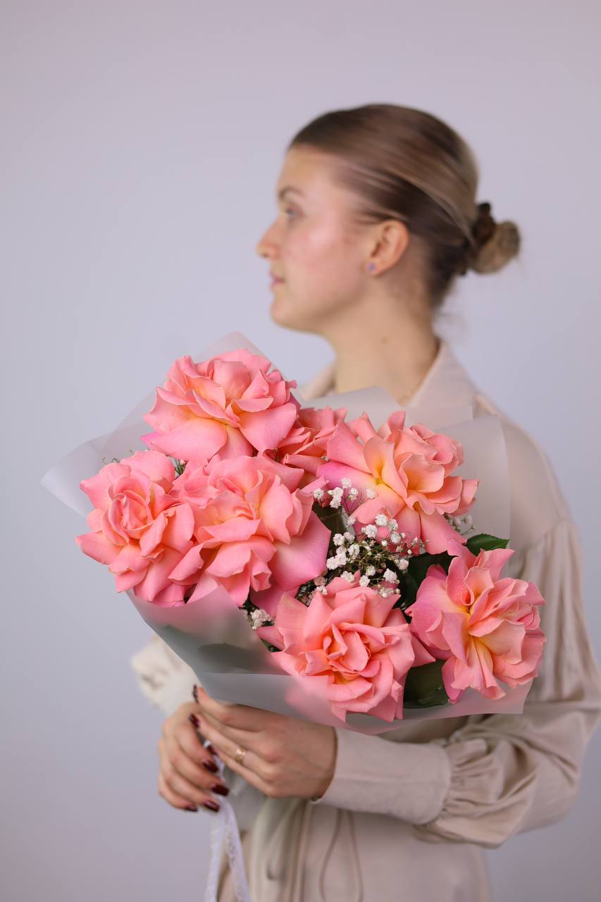 Букет французских роз и гипсофилы