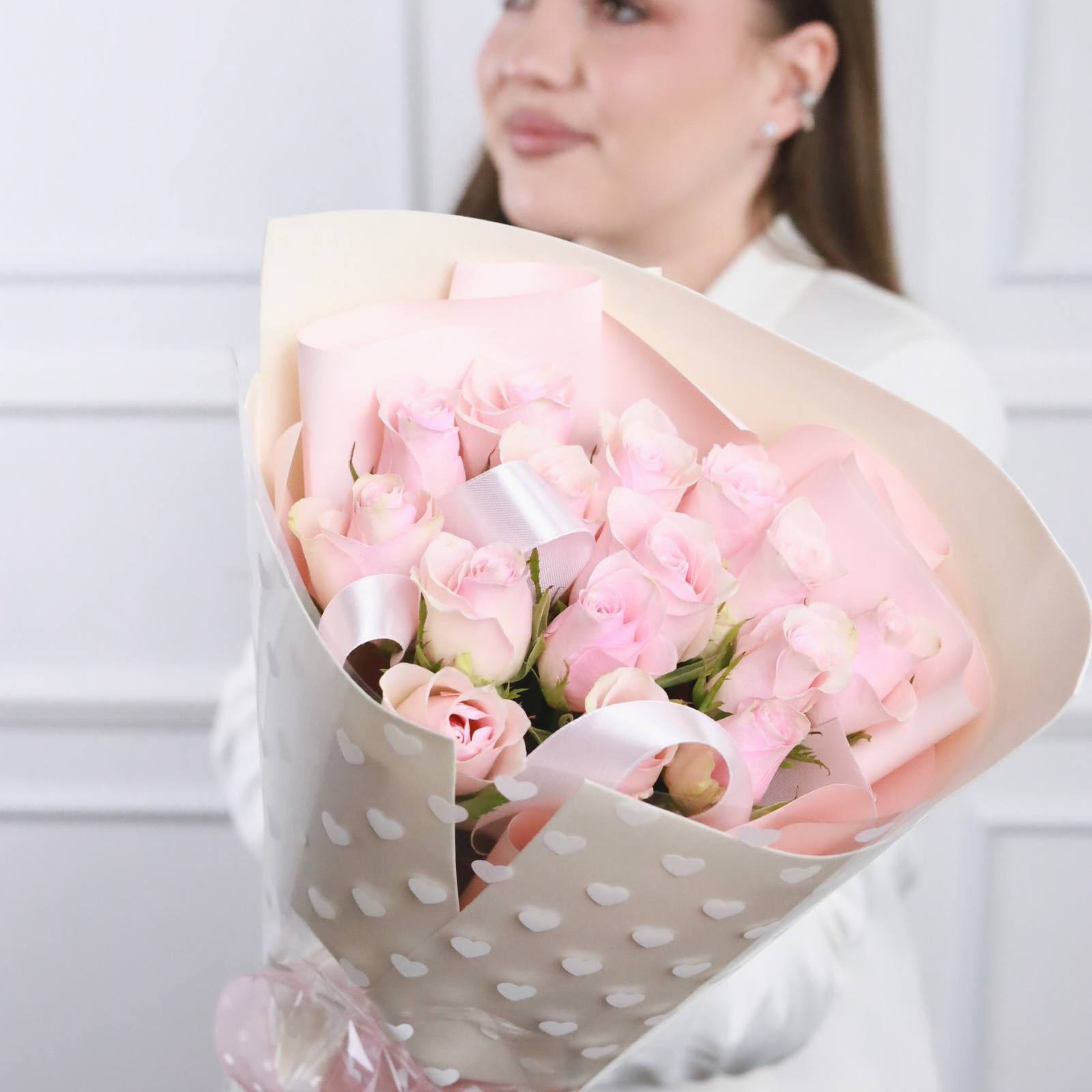 Нежный букет из 15 розовых роз