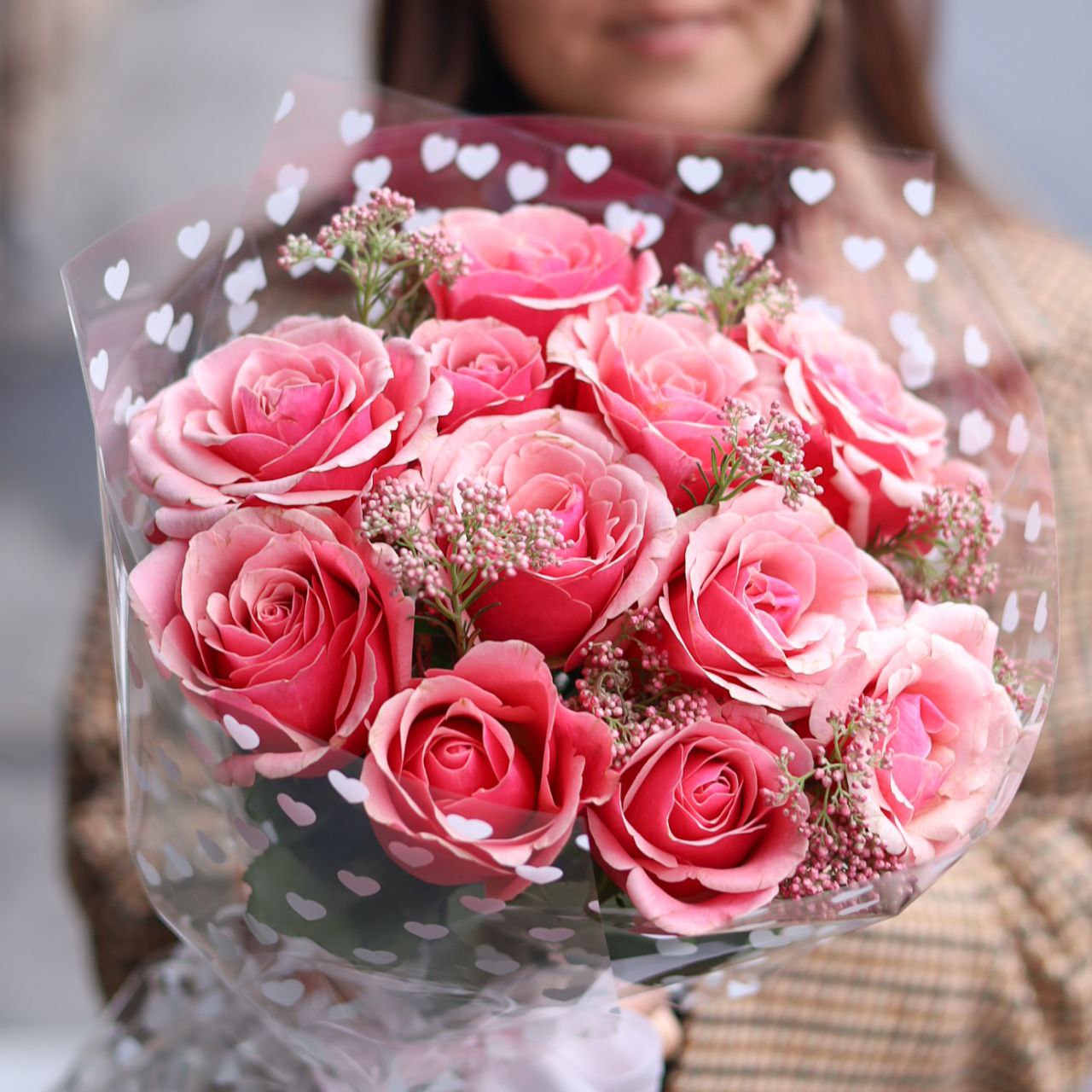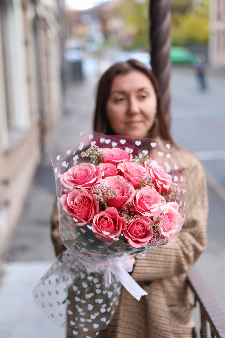 Букет из 11-ти розочек с лимониумом в оформлении.