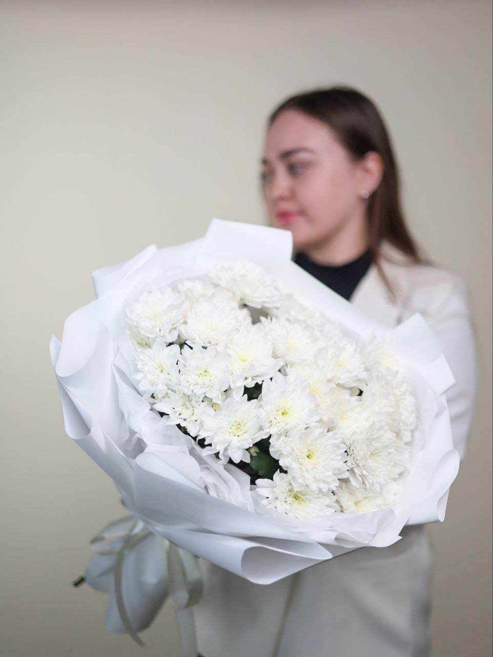 Букет пышной хризантемы в оформлении.