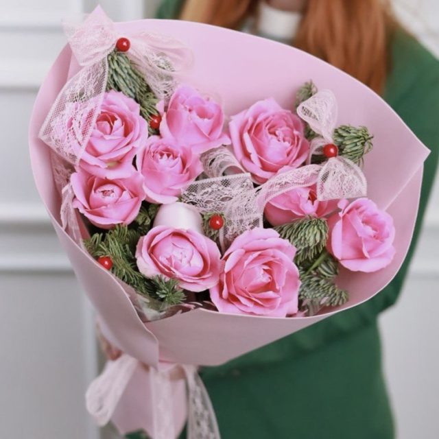 Букет розовых роз с нобилисом