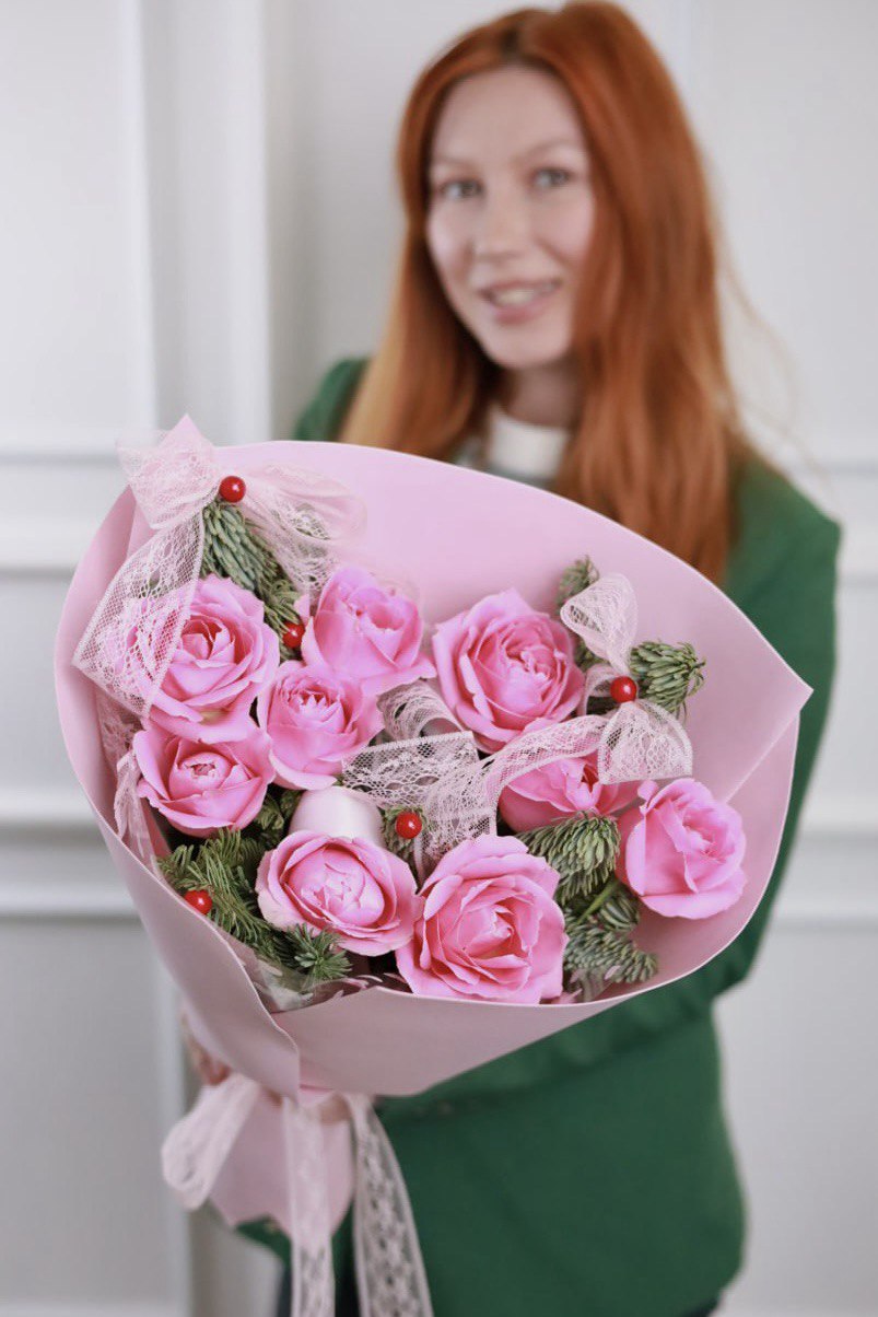 Зимний букет с крупными розами
