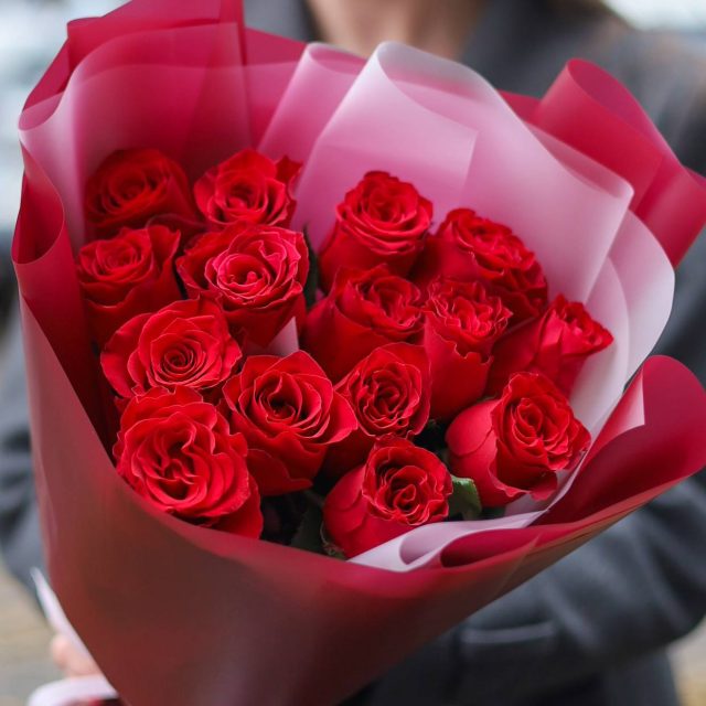 Букет из 15 роз в оформлении.