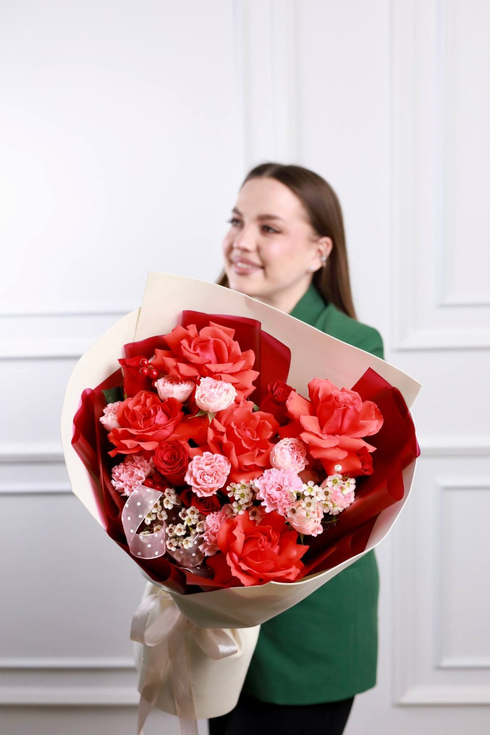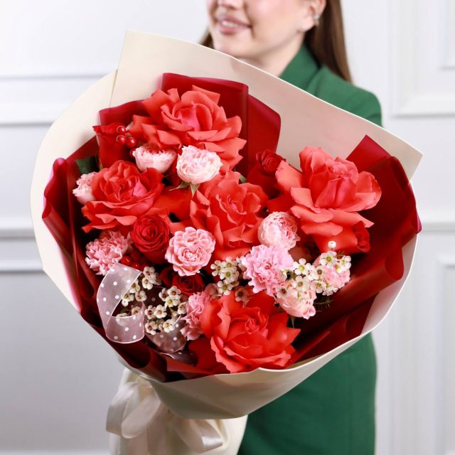 Красочный букет с пышными розами