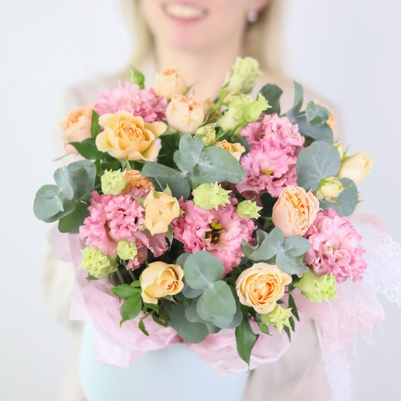 Прекрасная композиция с ажурной эустомой