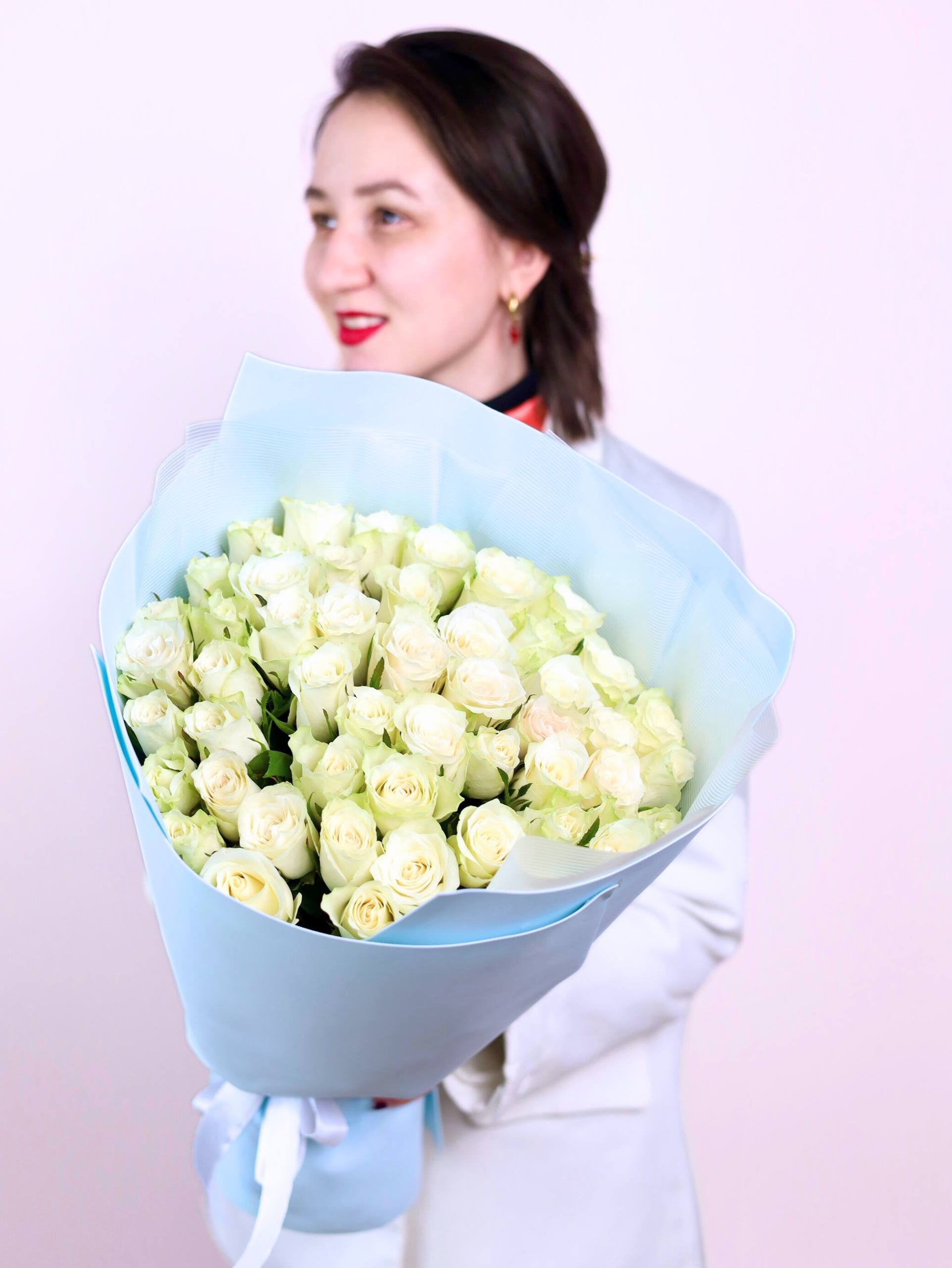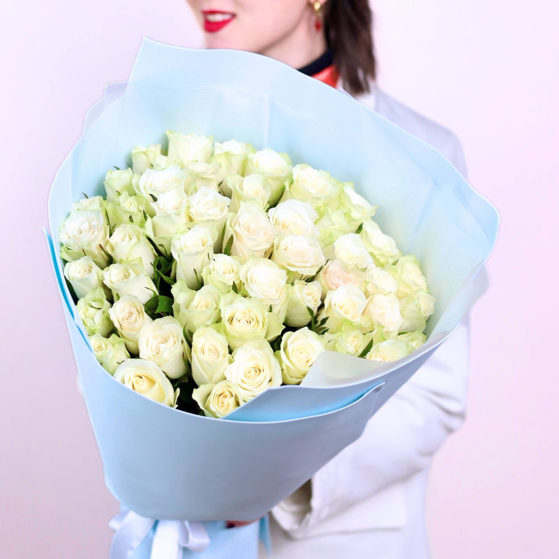 Великолепный букет из 51-ой белой розы в стильном оформлении.