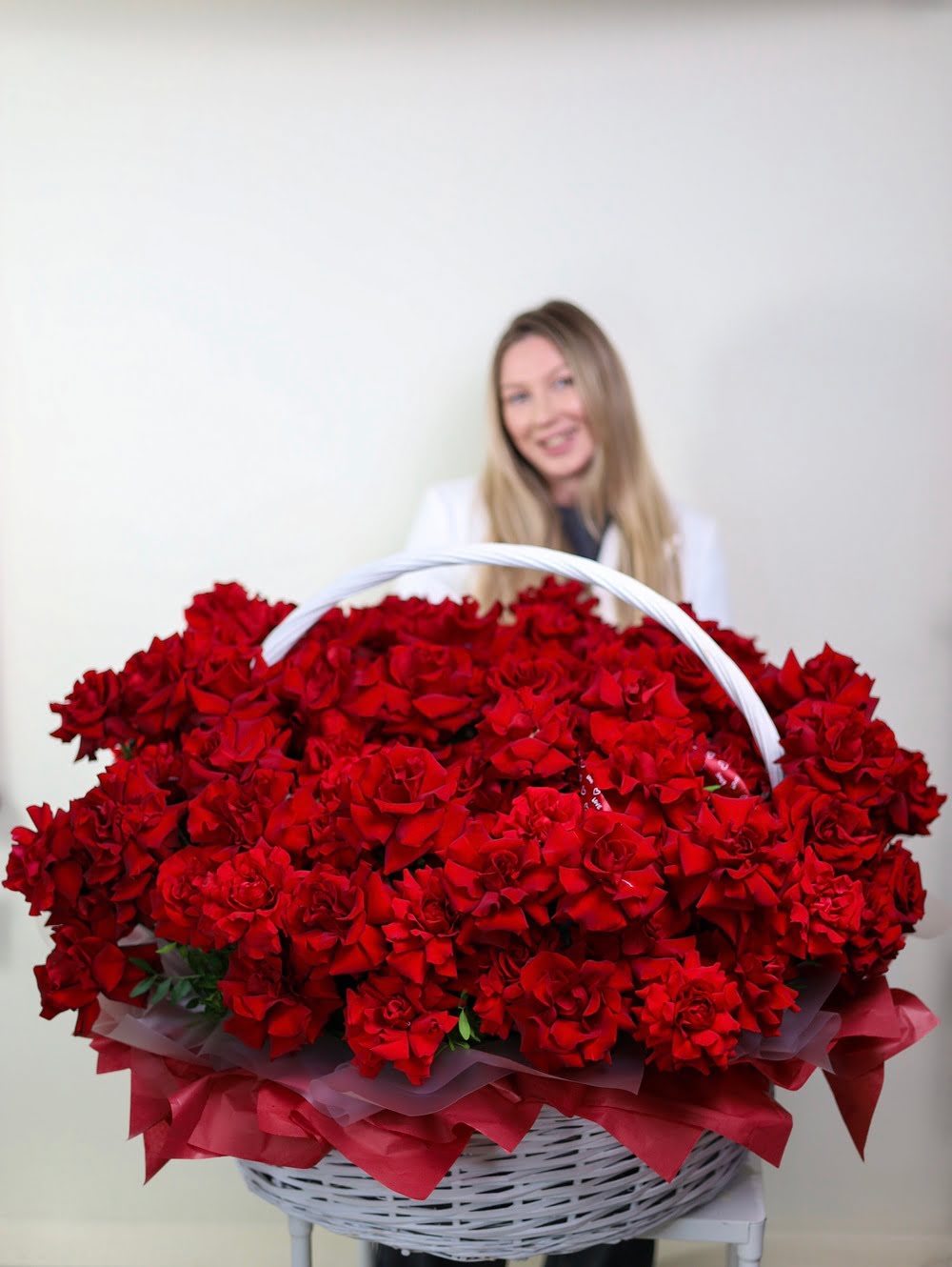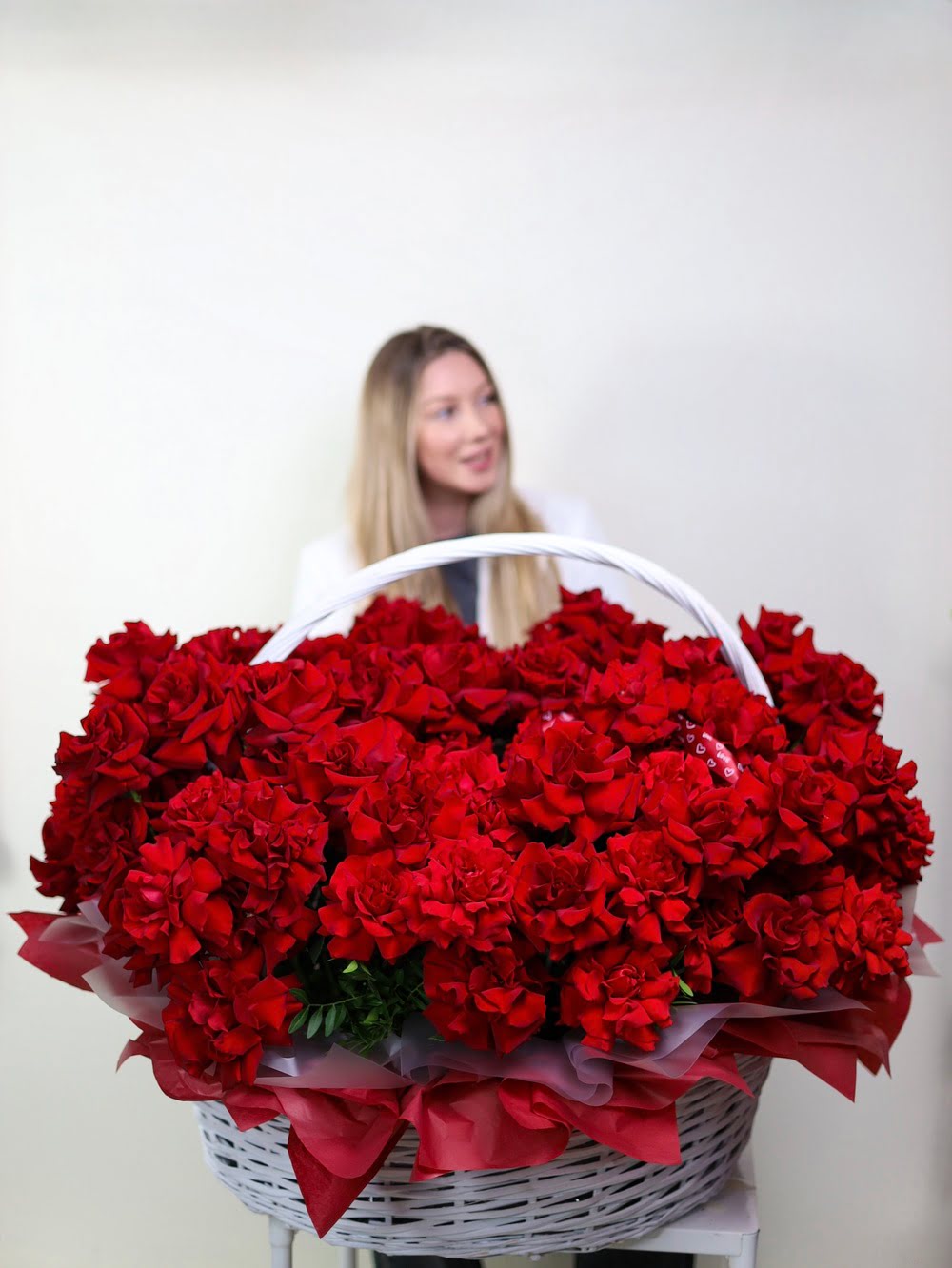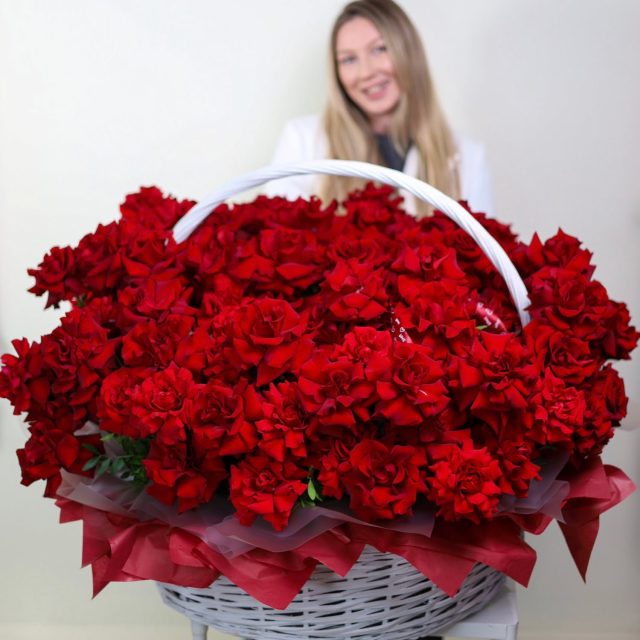 Невероятной красоты композиция из 101-ой изысканной крупной французской розы. Такая корзина – это идеальный вариант выразить свои чувства без слов.