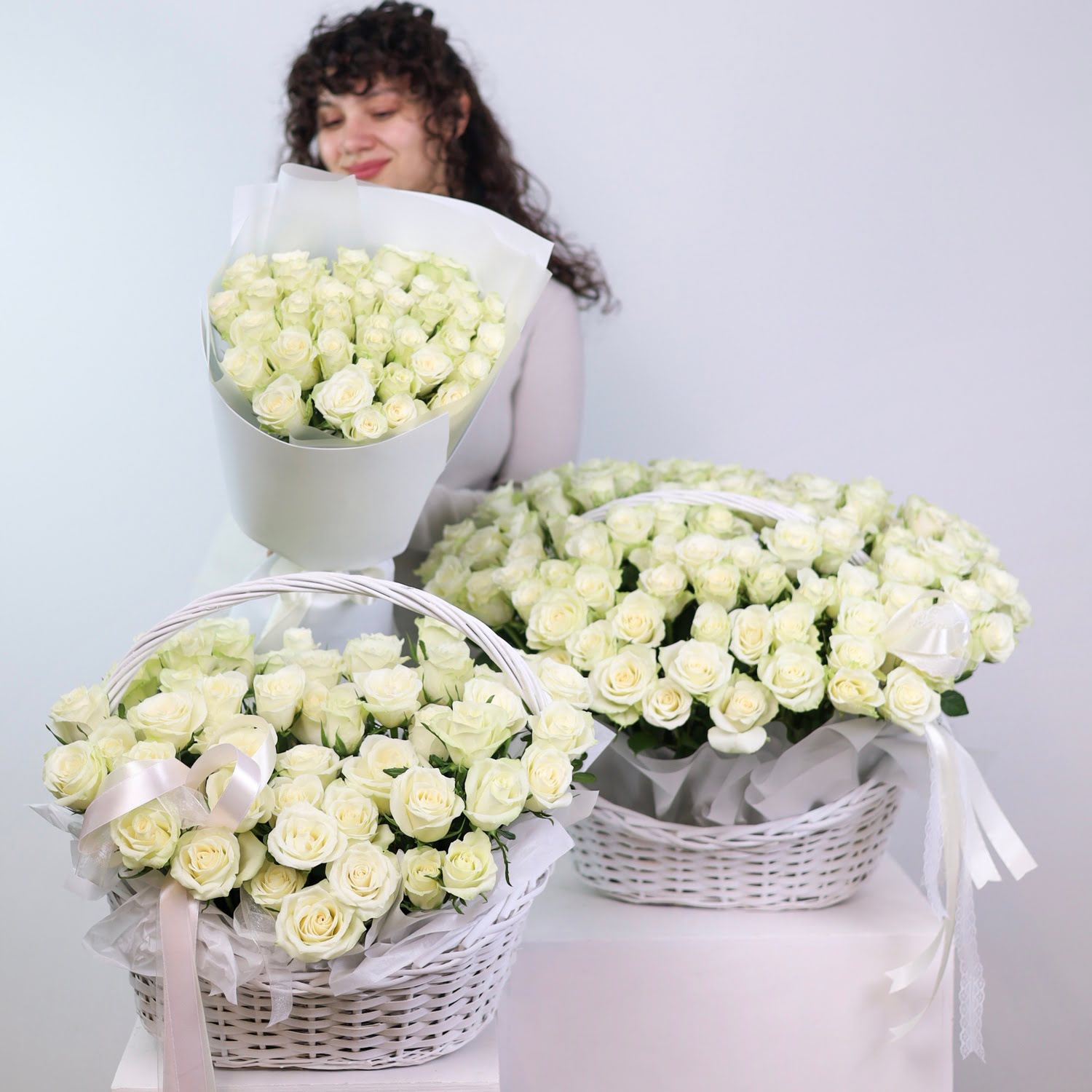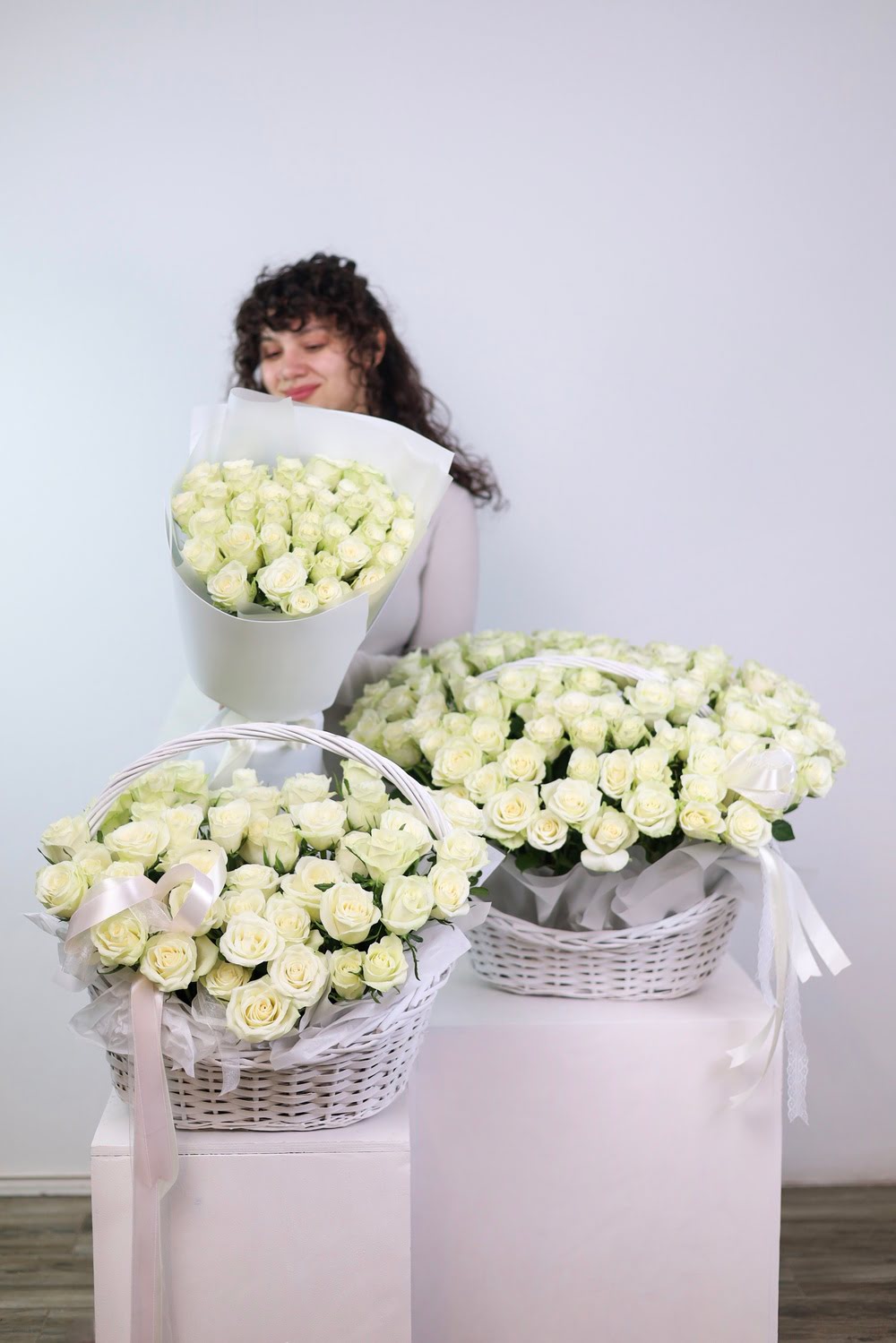 - корзина из 101-ой белой розы