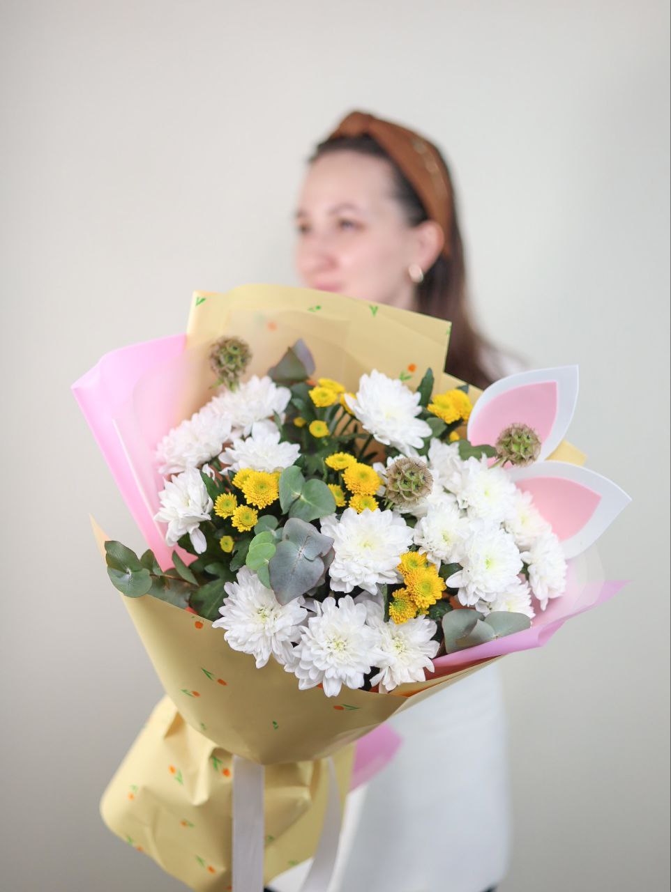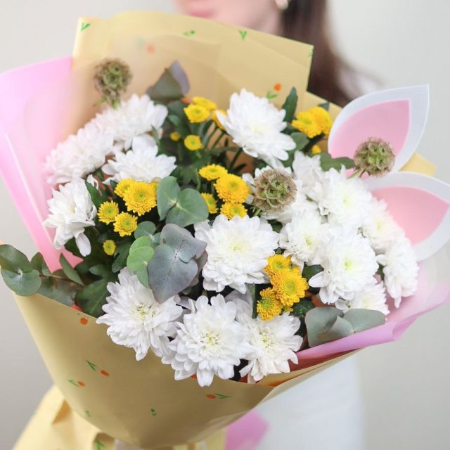 Букет хризантемы хризантем и сухоцветов в оформлении.